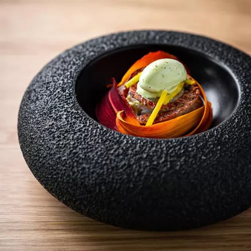 On an island encircled by canals within the Brière Regional Nature Park, chef Éric Guérin—an avid ornithologist with birds roaming his garden—channels his artistic temperament into terroir-driven cooking. His one-starred table delivers dishes of remarkable delicacy and freshness, each plate expressing a near-poetic sensibility. Exotic guestrooms allow diners to linger in this singular wetland setting.