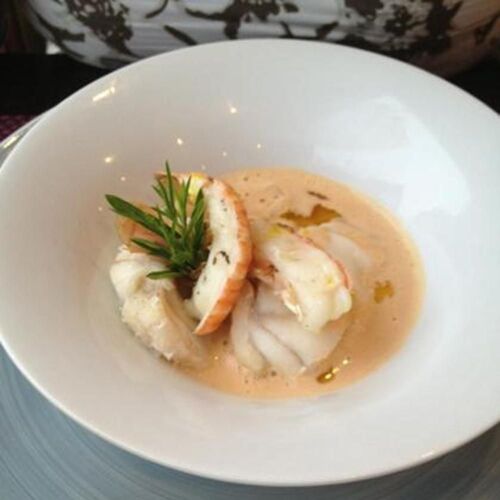 A glass-walled conservatory at Port-Lin frames the Atlantic horizon, where second-generation owners continue a four-decade tradition of impeccable seafood. The kitchen deals in timeless preparations: glistening plateaux de fruits de mer, scallops pulled from nearby waters, whole seabass baked in a salt crust for two. A rich lobster bisque arrives studded with tender chunks of the crustacean, while rum baba provides a nostalgic finale as the sun dips below the waves.