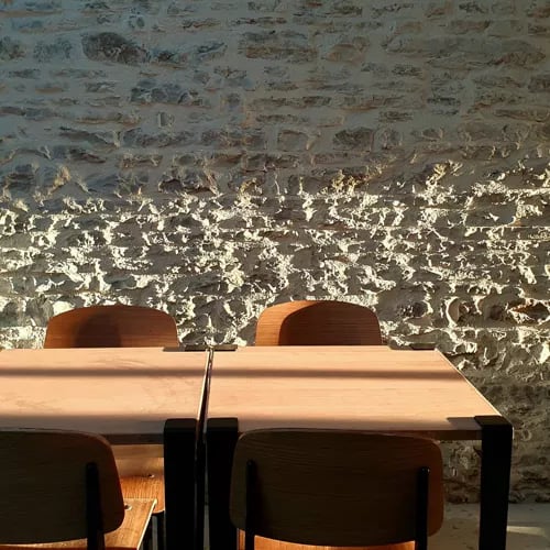 Chef Julien Borie returned to his native Oléron to establish this restaurant-bakery alongside baker Pauline Celle, following their acclaimed Baston venture in Bordeaux. The dining room's glass-fronted maturation cabinet displays the kitchen's prized aged fish, sourced from local fishermen and prepared with bistronomy precision. Organic sourdough from the adjoining bakery accompanies each course, while stone walls and vintage posters create an atmosphere of refined rusticity.