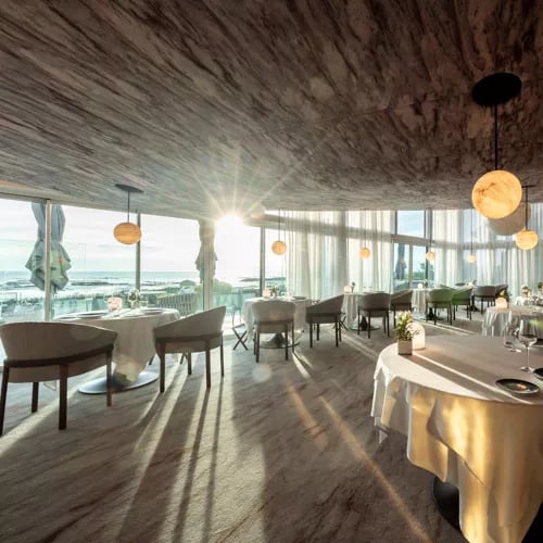 Pierre Gagnaire brings his freewheeling culinary philosophy to this ocean-facing dining room within La Grande Terrasse Hotel, near the mussel beds of Les Boucholeurs. The kitchen pivots between land and sea with precision—wild turbot arrives dressed in a luminous orange and turmeric jus that showcases Gagnaire's gift for unexpected harmony. A 700-label wine list and polished service complete the picture.
