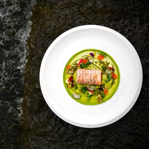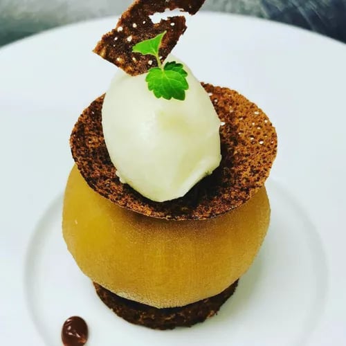 Chef Jean-Sébastien Monné brings Sarthois roots and creative vision to this Michelin-starred address where industrial architecture frames garden views. Local sourcing extends to rooftop beekeeping, supplying honey for dishes that reimagine French classics with modern precision. Duck from Canard Soulard arrives with baby carrots, orange, and bigarade sauce, while Angus tartare gains textural contrast from breaded quail's egg and puffed potato—meticulous technique applied to impeccable ingredients.