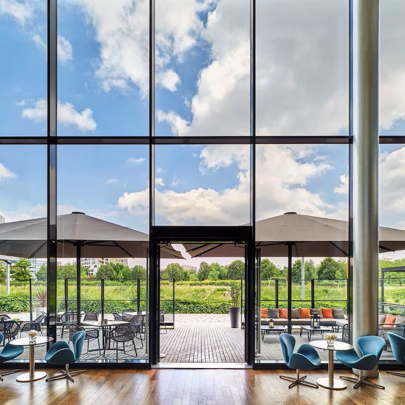 Architect Jean-Paul Viguier's dramatic triangular glass tower rises above Lille's business district like an ocean liner berthed on the skyline, anchored by a two-story casino with live entertainment and gaming. The fourth-floor spa delivers Cinq Mondes kobido facials and signature Diane Barrière detox treatments, while Les Hauts de Lille serves contemporary French cuisine in seven-course seasonal menus. Soundproofed rooms behind floor-to-ceiling windows frame the city's bell towers or neighboring Parc des Dondaines, a Riviera-meets-Eurostar counterpoint to Flemish tradition.