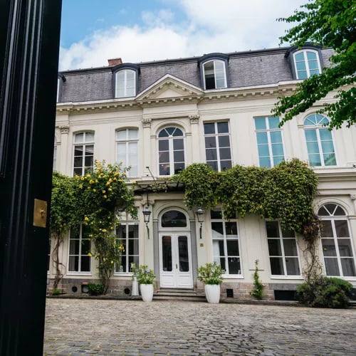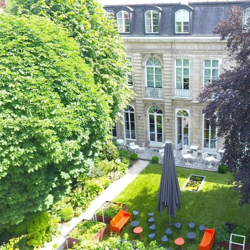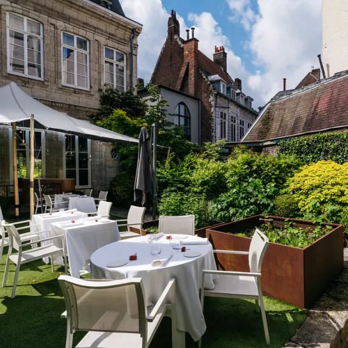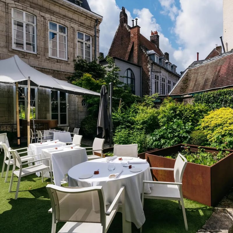 The Countess d'Hespel's 1736 townhouse, now Lille's first five-star boutique hotel, preserves period ceilings and parquet beneath contemporary art installations. Nineteen rooms include La Suite Clarance with private staircase; Le Pavillon wing adds six urban-styled chambers. Chef Gaëtan Citerne's Michelin-starred restaurant sources from the three-hundred-square-meter garden—aromatic herbs, seasonal vegetables, honey from on-site hives—serving inventive seafood-focused French cuisine in wood-paneled dining rooms, an intimate library, or the garden terrace.