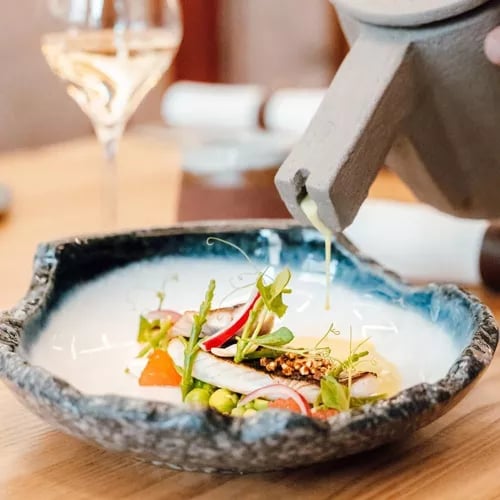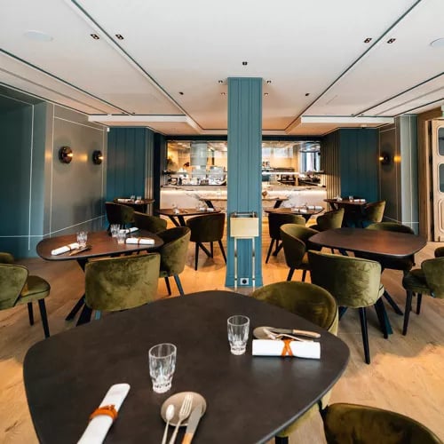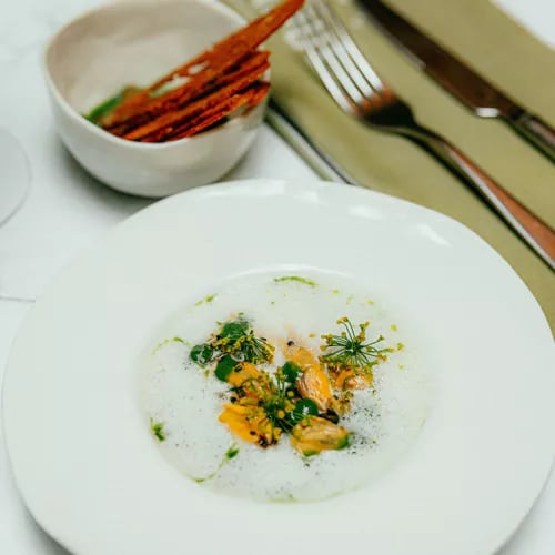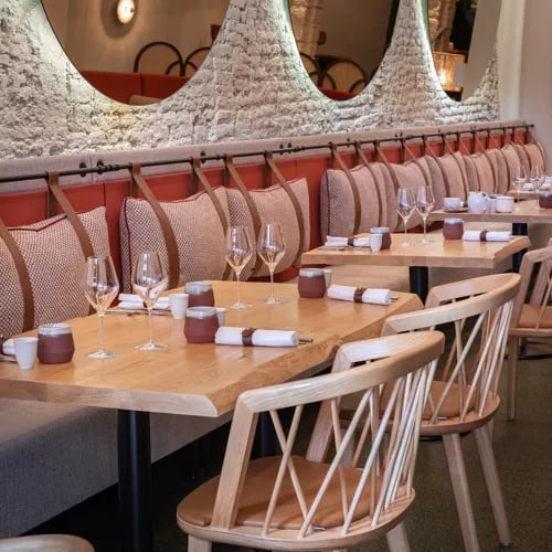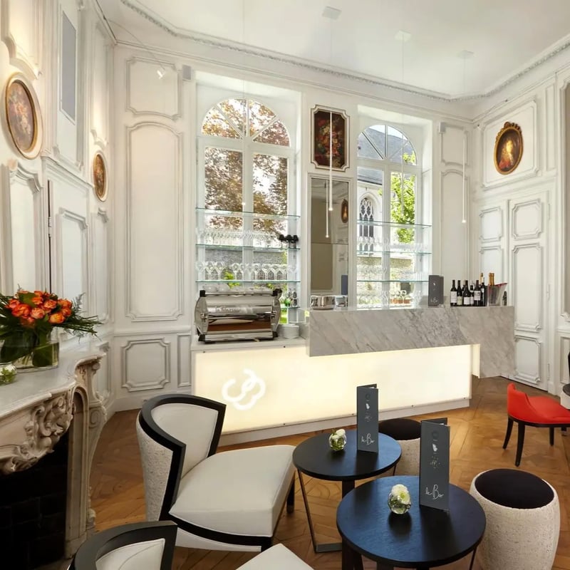 Behind the unassuming address lies a gracefully restored townhouse whose period architecture frames an inventive menu led by modern technique and precision. Dishes such as quail's egg with morels, vin jaune emulsion, and whole roast Mallard duck with confit legs and chestnut showcase careful sourcing and meticulous execution. A sun-dappled courtyard terrace and cellar of distinguished wines and spirits complete the refined setting.