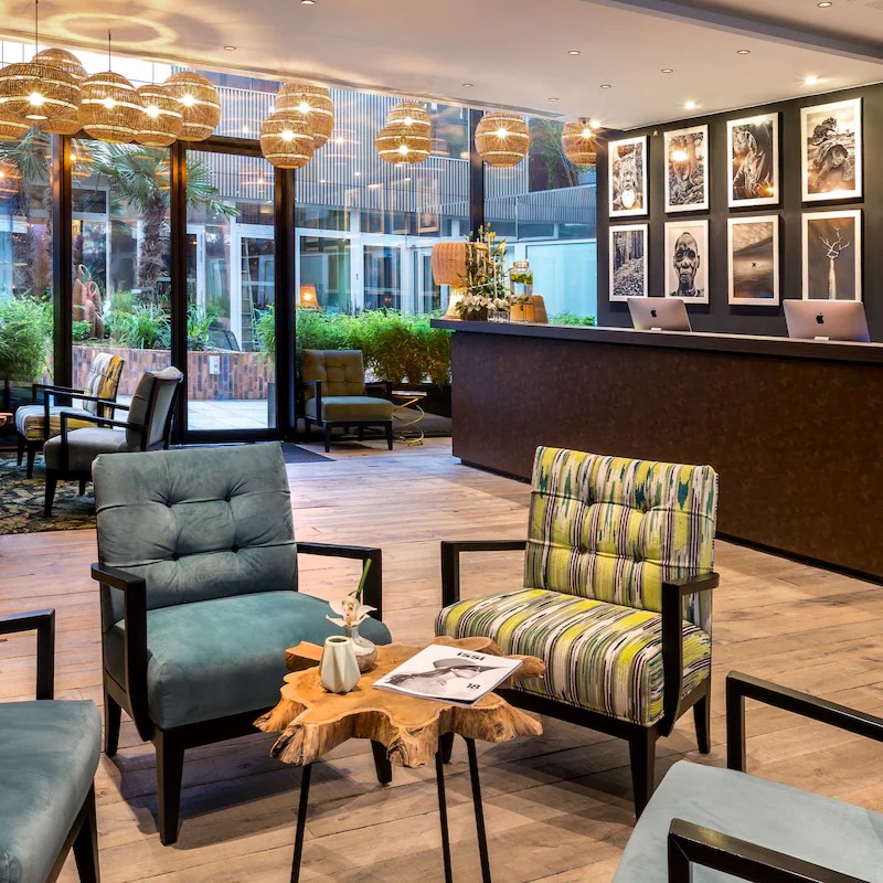 The former Polish consulate from 1962 wears a striking ridged steel façade that wraps around floor-to-ceiling windows, while interiors embrace an escapism theme with giant palm leaves in the lobby and tropical-print wallpaper. Families appreciate cots, bottle warmers, and chef-adapted portions at Le Jane gastronomic restaurant or Ma Reine brasserie. An interior garden courtyard, on-site Pâtisserie le Colibri, and brutalist-meets-contemporary architecture make this Best Western Premier Collection property unusually characterful for the edge of Vieux-Lille.