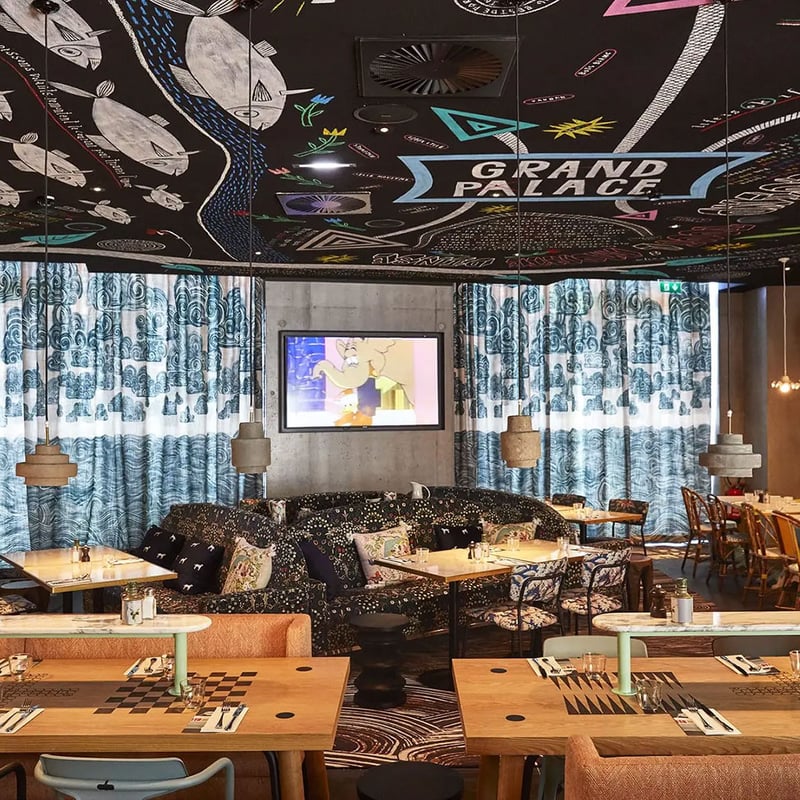 Mama Shelter captures Lille's bohemian energy through graffiti-style murals, a lively central bar, and 112 ultra-functional rooms with satin sheets and flat-screen entertainment. Families flock to the weekend brunch where children's activities run alongside sidewalk dining, while the rooftop terrace hosts DJ sets after dark. The XXL Mama suite features skylights illuminating animal prints and pop art, and a top-floor privatizable space offers 360° city views.