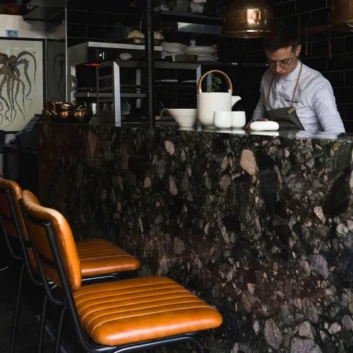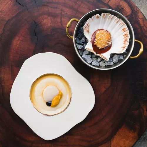 Chef Gérald Guille draws on his Étaples coastal heritage to craft modern, uninhibited gastronomy that earned Pureté its Michelin star. His seasonal tasting menus—scallops with mimolette and limequat, trout with beetroot and blood orange—balance invention with classical technique. The long, open-kitchen dining room pairs raw concrete, leather, and wood to create a focused backdrop, letting the chef's personality-driven plates command full attention.