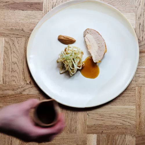 Valentina Giacobbe and Julien Ingaud-Jaubert—alumni of Pierre Gagnaire and other haute kitchens—have built a Michelin-starred haven for vegetable-forward gastronomy near the Grand'Place. Giacobbe's Italian-Asian heritage inflects seasonal plates that balance delicacy with bold accents, while a fully vegetarian menu proves her technique extends beyond token concessions. The red-brick interior nods to Lille's industrial past; the cooking looks firmly ahead.