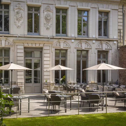 A former 17th-century convent reimagined as Lille's first four-star property, this stylish hotel retains its original cloisters—vaulted ceilings framing an airy central courtyard where the restaurant and lounge bars now operate. Families benefit from complimentary cots, interconnecting rooms, and a dedicated children's menu, while a babysitting service and pet-friendly policy (€20 nightly) complete the practical amenities. The Telegraph awards it 8/10 across location, character, and dining.