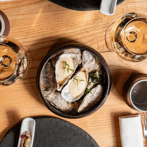 Victor Berthe and Clément Delécluse—France's 2021 Young Sommelier—run this compact Saint-André wine shop and dining room with an open kitchen and vintage furnishings. Dinner features a tasting menu built around small-scale producers and seasonal ingredients, playful in execution and varied in approach. The short à la carte offers shared starters, fish or meat or vegetarian mains, two desserts. Natural wines anchor the list.