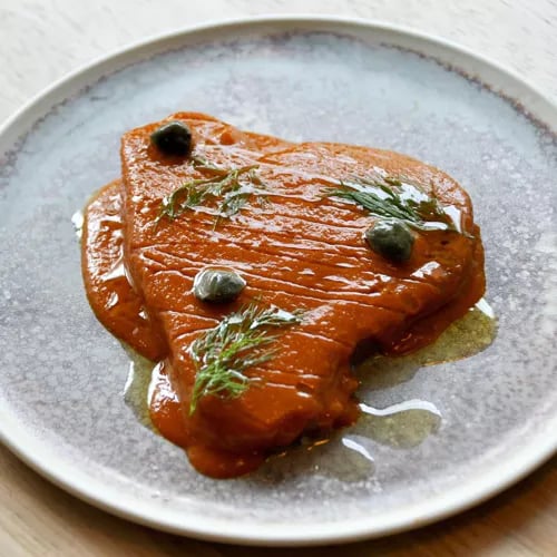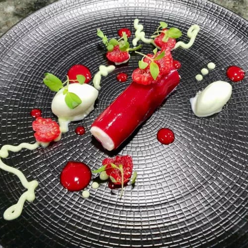 A century-old former hairdressing salon near Villa Majorelle now houses chef Theo Mareschal's contemporary kitchen. His Nordic training at Oslo's Kontrast surfaces in the Scandinavian-inflected décor—vegetable crates, vintage Faema espresso machine—and in plates that favor clarity over complexity. The veal with mushrooms and baby potatoes exemplifies this restraint, while a jet-black vanilla ice cream with squid ink delivers playful surprise.