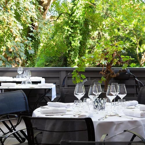 Chef Charles Coulombeau brings a refined Japanese sensibility to his modern French cooking, honed through stints at Les Prés d'Eugénie, Lameloise, and kitchens in Japan. His one-starred table occupies a stately mansion beside the opera house, where dishes spotlight unexpected citrus—Buddha's hand, calamondin—alongside ikejime Arctic char and Bresse chicken. The terrace, overlooking verdant parkland, rewards long summer lunches.