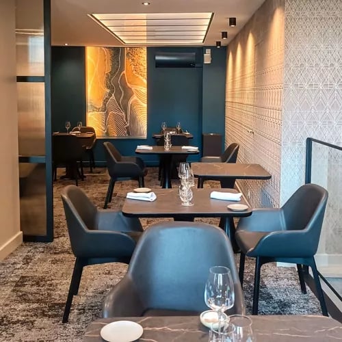 A converted farmhouse outside Nancy, La Cour des Sens pairs exposed stonework with warm wooden floors to create an intimate dining room. Chef Benjamin Royer's technical command shows in dishes like scallops cooked on hot stones, flambéed with saffron gin and finished with smoked aubergine caviar, or pan-roasted turbot dressed with heirloom turnip and truffle. Refined, unhurried, deeply satisfying.