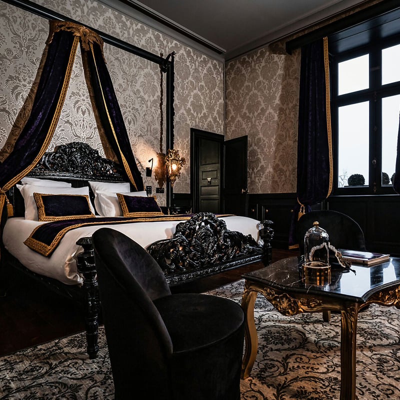 This early 19th-century château turns lodging into global expedition: seventeen rooms and suites each honor a different destination, from leopard-print Minuit à Paris to tent-canopied Mongolie mon Amour. Guests move through gardens themed by continent, dine on brasserie classics at Table du Marquis, then descend to a Cinq Mondes spa set within vaulted medieval cellars—or book outdoor massage in the bamboo-ringed Gazebo. Bar Zélélé runs regular sommelier workshops and mixology sessions.