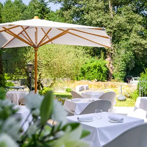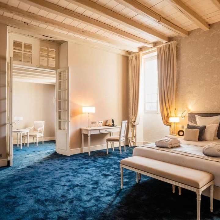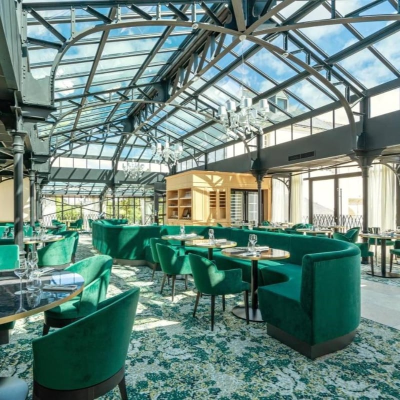 A 13th-century Cistercian abbey outside Nantes retains the soaring archways and sandstone staircases of monastic architecture, now softened by chandeliers and 19 guest rooms in calm earth tones. The greenhouse-style bistro opens onto a circular pool, while bicycles await those exploring the surrounding countryside. The appeal lies in contrast: grand but unadorned spaces designed for silent reflection, adapted with restraint for contemporary luxury travelers seeking stillness and history in equal measure.