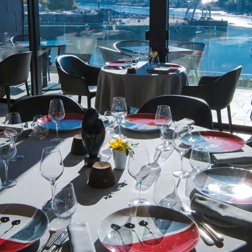 Jean-Yves Guého's Michelin-starred table occupies an 1874 manor overlooking the Loire, where panoramic windows frame passing boats and the iconic Titan crane. Trained at Auberge de l'Ill before stints in New Orleans and Hong Kong, the Breton chef delivers refined, fish-forward Modern Cuisine: spider crab chilled in vegetable ravioli with Le Croisic seaweed, green asparagus from Longué with smoked pike roe. A Loire-focused wine list complements tasting menus, including bespoke vegetarian options.