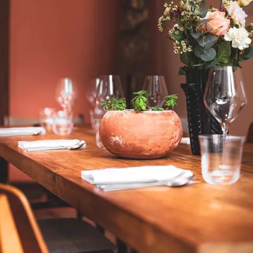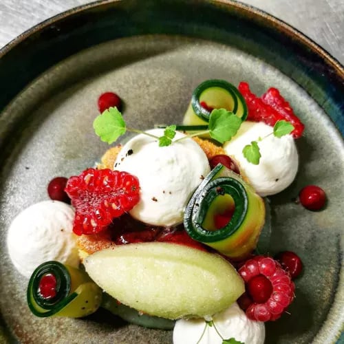 Fifth-generation chef Mathieu Pérou earned his Michelin star and Green Star cultivating greenhouse produce and foraging the Erdre river for ikejime-prepared sandre and silure, alongside poultry from La Ferme des Marais dressed with kimchi and local citrus. His sister Anne-Charlotte, recognized by Michelin for exceptional service, oversees the chic dining room near the riverbank. Tasting menus span modern French invention, from carp in oxtail bouillon to rigolette nantaise desserts, paired with 350 French wine references.