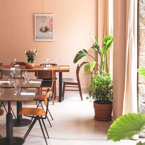 British chef Dominic Quirke brings a decade of local expertise to this industrial-chic dining room, where modern cuisine draws from Asian travels and organic producers in the Loire countryside. His menu balances indulgence with vegetable-forward invention: puff pastry chicken pie with vin jaune, Vendée pork alongside beetroot and kale, or a coulibiac layering cauliflower, seaweed, and shiitake. Expect bold flavors, a pop-rock soundtrack, and the chef himself emerging to chat in English.