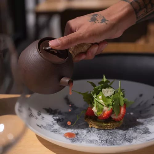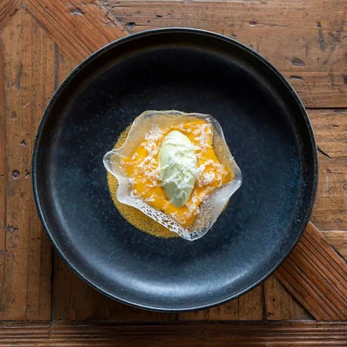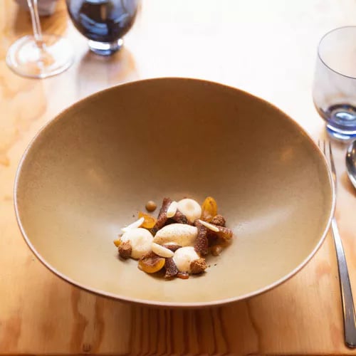Perched atop a parking structure in a luminous greenhouse named for the Norse goddess of fertility, chef Sarah Mainguy's one-star dining room showcases poetic, largely plant-based cooking inspired by Scandinavia and Japan. Seasonally shifting menus—organized by 'edible spaces' from coastline to forest floor—draw on a rooftop garden of herbs and berries, yielding inventive compositions like dulse-smoked tarama with mussel jus and Mesquer pigeon finished over charcoal with smoked eel.