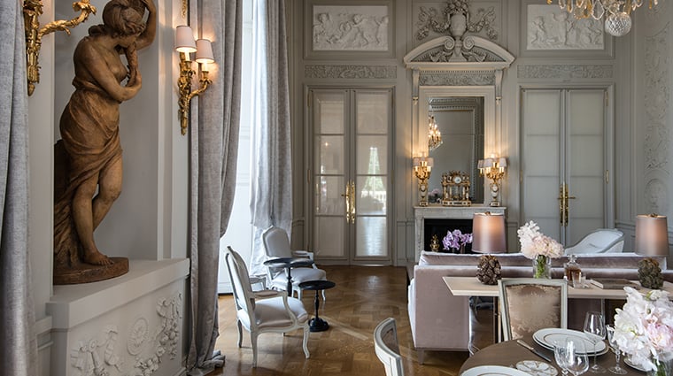 The grands hôtels of the Right Bank carry their Haussmannian bones with earned confidence — marble staircases worn smooth by a century of arrivals, brass elevator cages still humming between floors, ceiling mouldings that predate the Eiffel Tower. Along rue du Faubourg Saint-Honoré and around Place Vendôme, these properties operated through two world wars and the jazz age, their guest books reading like cultural history. Many retain their original architectural details: stained glass cupolas, wrought-iron balconies overlooking interior courtyards, parquet de Versailles flooring in corner suites.