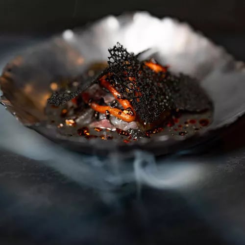 Chef Romain Mahi and pastry chef Ayumi Sugiyama earned their Michelin star in 2019 with a singular approach that layers classic techniques over unexpected experiments in roasted and smoky aromatics—Arctic char in clementine jus with caraway and orange-peel marmalade, poularde paired with smoked eel. The chefs hand-shape their own tableware, refreshing forms with each menu. Though labeled Italian by Michelin, the cuisine charts a broader, accent-driven philosophy: openness, exchange, and the stories ingredients carry.