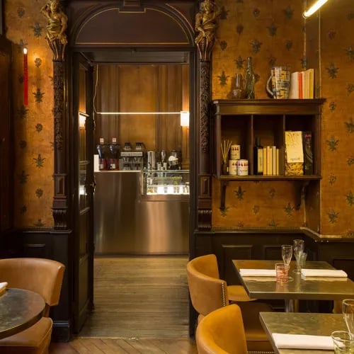 The former Graveur Stern engraving workshop retains its nineteenth-century character—original wood panelling, historical photographs, and artisan carvings—while serving inventive Italian cooking that leans creative rather than traditional. Expect seasonal risotto, dill tagliolini with spider crab and black olive sauce, and house pistachio gelato, all plated generously. The Michelin Plate distinction reflects technique and consistency; the covered-passage setting and warm service suit both business dinners and leisurely evenings in the Grands Boulevards.