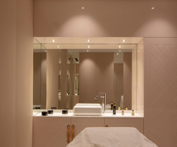 The Lacure Officine spa rolls out the red carpet for both hotel guests and external clientele. This urban haven of relaxation includes two treatment rooms (one of which is a double), as well as a wellness space with jacuzzi, a hammam underneath a golden mosaic, and a sizeable heated pool with a sapphire-blue floor. As for the spa treatment menu, it offers an approach combining beauty and relaxation, with products from the Lacure Officine brand. Focused on prolonging a youthful appearance, these products are also designed to contribute to your overall well-being. The black orchid enhancing treatment, one of the spa's signature massages, is perfectly geared toward those suffering from stress, offering an hour of muscular relaxation.