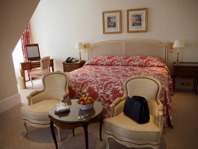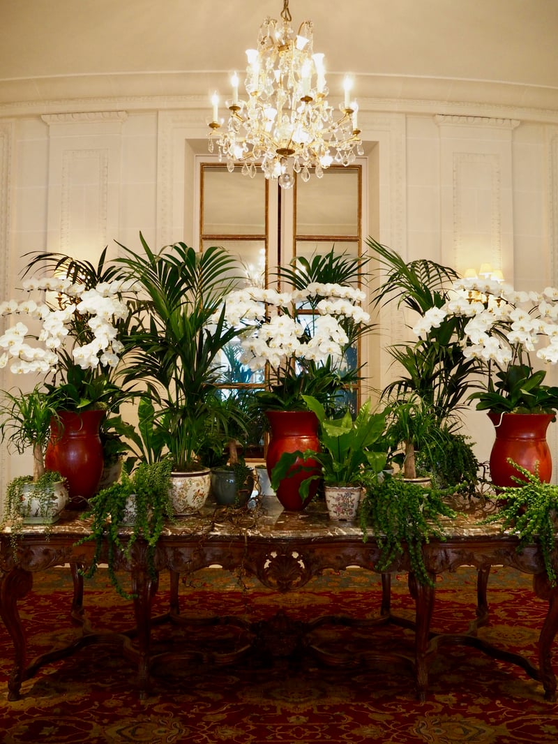 The Bristol is one of the most prestigious hotels in the capital. Even its location is a marvel: it's situated a stone's throw away from the Elysée Palace in the famous Rue Saint-Honoré, well-known for its ready-to-wear fashion boutiques. As I walked through the front doors, I discovered an imposing lobby with a marble floor, crystal chandeliers, and floral arrangements, all in a pure 18th century French style. As I would expect from such an upscale establishment, I was impeccably greeted; the personnel was thoughtful and attentive, so much so that I felt like I was the hotel's only customer! It's no mistake that Le Bristol Paris was the first French hotel to receive the distinction of “Palace,” or luxury hotel!