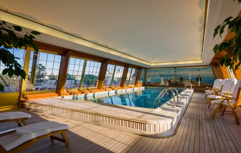 This luxury establishment wouldn't be complete without a superb spa. No worries, the spa Le Bristol by La Prairie is the perfect place to be pampered with its menu of never-before-seen treatments, created in collaboration with the famous Swiss brand La Prairie. The 8 treatment rooms, some of which continue onto a private balcony, offer the perfect refuge for relaxing under the expert hands of a therapist. As I was running out of time, I didn't get the chance to try out the treatments, but I did have time to discover the pool on the 6th floor overlooking all of Paris. It features an original style; the walls are made of solid teak, and paintings throughout the space give guests the impression of being on an enormous sailboat.