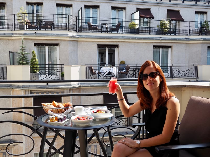 Amidst 44 suites in the Prince de Galles, I hung my hat in the Mosaic Suite: 45 m², with 1930s-era influences from the living area to the separate bedroom. It's chic and modern, offering a certain sobriety with light and pastel tones enhanced by ebony furniture. In the bathroom, the Art Deco look is on full display with superb black and gold mosaics. The suite continues onto a balcony overlooking the courtyard, a nice quiet place to settle down in peace. We took advantage of the calm atmosphere the following morning to enjoy a private breakfast.