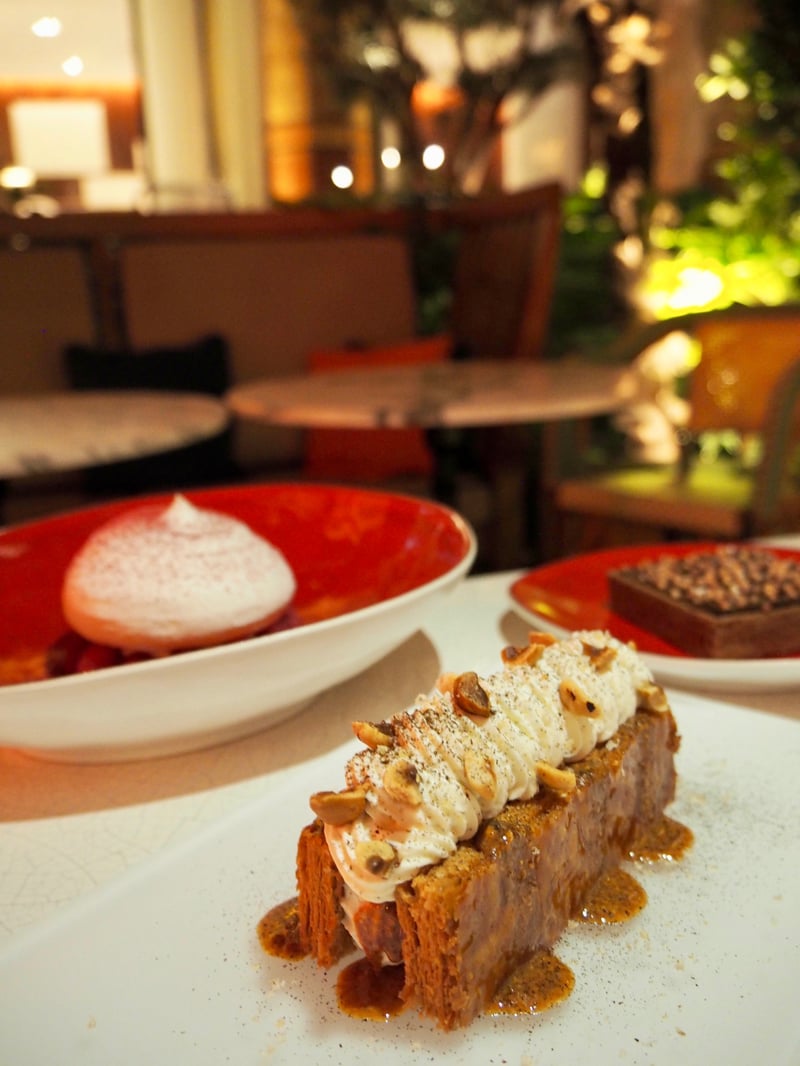 For dessert, we discovered the work of pastry chef Nicolas Paciello. This energetic young man is not only extremely kind, but he also delighted us with his sweet treats. For Le Patio (he also makes desserts for the Michelin-starred restaurant), the pastry chef concocted an assortment of classic confections: an incredibly light berry Pavlova, a millefeuille, and an exquisite chocolate cake. To prolong the pleasure, I had only to return to try the famous tea time, where all of Paris comes to indulge in terribly addictive desserts.
