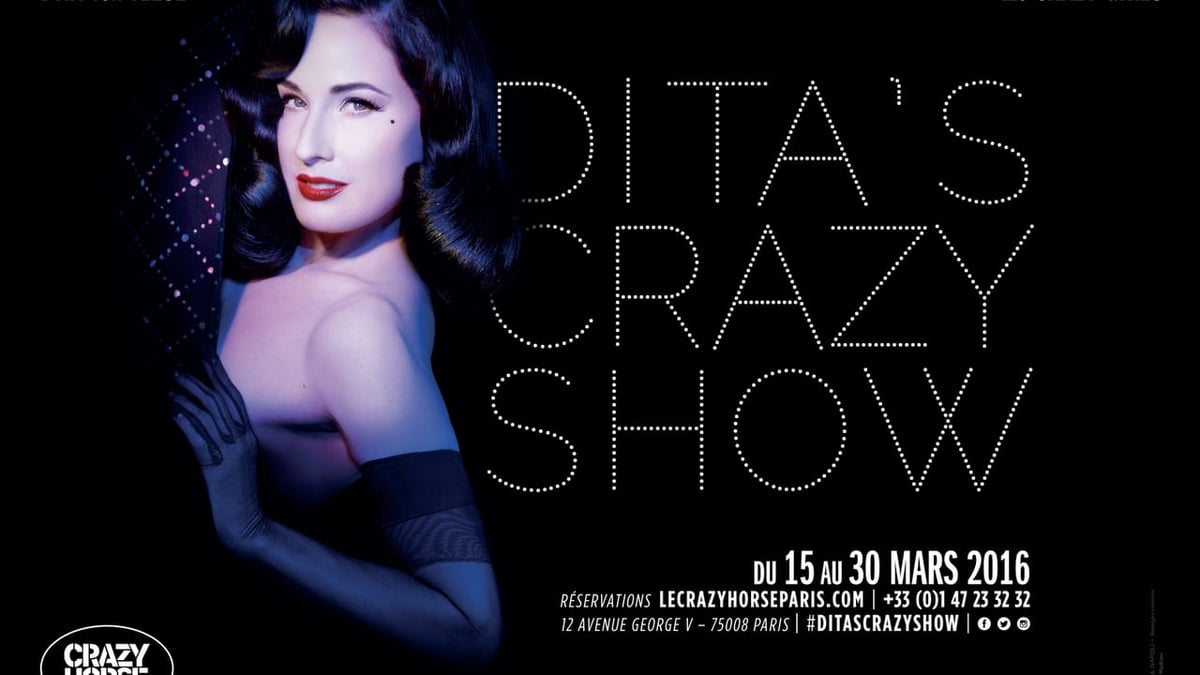 There is nothing better to mark the 65 years of the Crazy Horse than the return of a phenomenon in the strip tease domain and I have nominated Dita Von Tease. For those of you who do not know her, she is 43 year-old American, ex-wife of Marilyn Manson, who is a world icon of stripping. With a very pale complexion and long black eyelashes just like her black hair, she cultivates an absolutely retro style which suits her marvelously. The first guest star to have made her appearance on the mythical Parisian stage, she was back from 15 to 30 March 2016 for 33 exceptional shows.