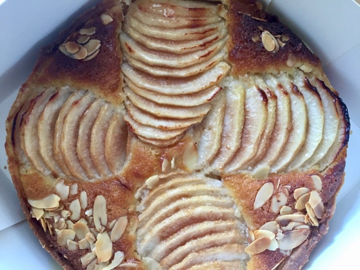 We're very warmly welcomed—the chef tells us what the class will entail, but there's no time to lose, as we have work to do! We begin with our first dessert: a pistachio cake, with aromas that already make our mouths water. The chef explains the techniques, shows us how to do the most complicated ones, and then it's up to us to make it happen. We continue with hazelnut financiers before finishing the class with a Bourdaloue Tart (a pear and almond pie). As the class focuses on baking basics, everything is very straightforward and feasible, but in any event if we have a question or problem, the chef is always there to help and explain how we can improve.