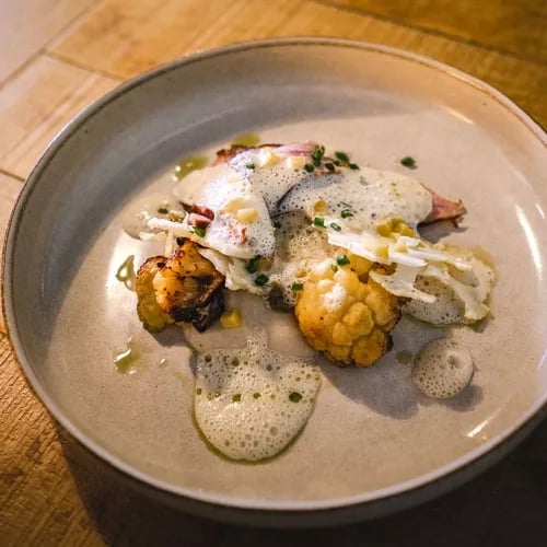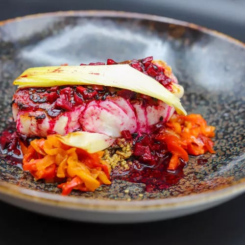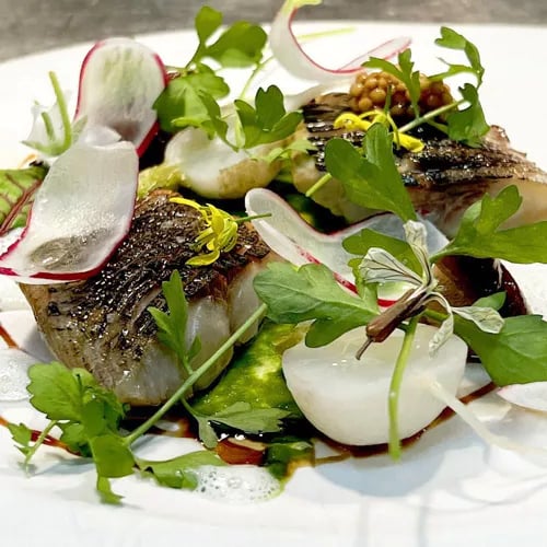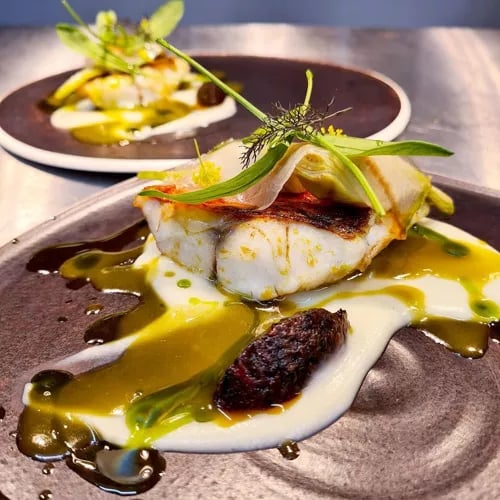 Frédérique and Lionel Hénaff's Michelin-starred table anchors its inventive cuisine in Brittany's finest raw materials—scallops from Morlaix Bay, local abalone, and an abundance of foraged herbs and flowers. The chef's nature-driven approach favors light, siphoned sauces that amplify rather than mask, while counter seats facing the open kitchen offer front-row access to the creative process. Named for wild garlic that heralds spring, Allium delivers both botanical poetry and gastronomic precision.