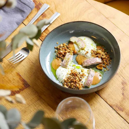 This inventive modern bistro, run by two young talents, serves hearty cuisine in a colourful, musical setting. The menu features original starters like mushroom and coffee velouté with celeriac brunoise and espuma, while the fillet of flounder in pastry arrives balanced by lemon and pistachio condiment. Holding Bib Gourmand distinction, Éclosion delivers quality-driven plates with smiling, attentive service that rewards booking ahead.