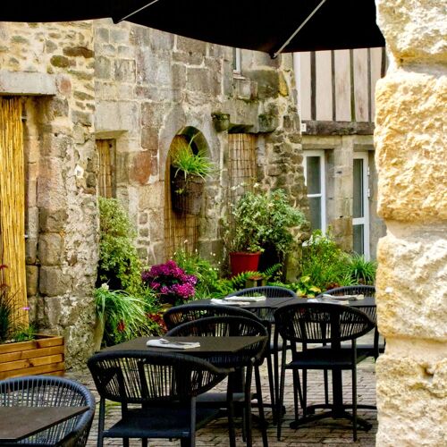 Housed in a historic stone building steps from St Corentin Cathedral, this intimate 20-seat dining room marries wood and stone finishes with modern Breton cooking that occasionally ventures beyond regional borders. The evening multi-course menu showcases dishes like creamy parsnip with ricotta and pear, while a quiet terrace offers a sheltered retreat from the city centre when weather permits.