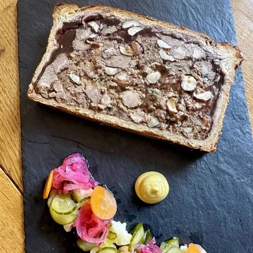 A family trio—twins and partner—runs this Bib Gourmand address between Rocamadour and Padirac with uncommon precision. The brother's butcher training ensures impeccable meat from nearby Ferme Bouscarel, while vegetables arrive from Tauriac and trout from Le Gouffre du Blagour. Global inflections—za'atar, black lemon, Korean ssamjang mayonnaise—punctuate the deeply local cooking, creating a table worth the detour through the Lot.