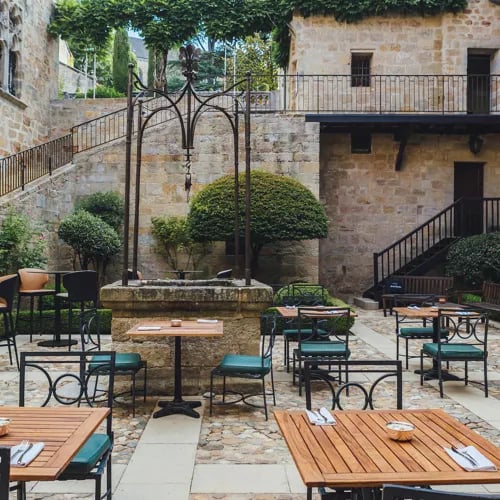 Inside a medieval castle's former guardroom, chef Grégory Tavan has built a reputation for seasonal French cooking with creative inflections. The historic stone walls now frame a contemporary dining space where his market-driven menus reflect both regional tradition and modern technique. A Michelin-recognized address in central Figeac, La Dînée du Viguier rewards those seeking refined cuisine in an atmospheric, centuries-old setting.