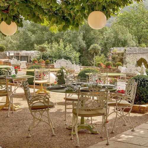 Sheer cliffs crowned by ancient fortifications plunge down to the Ouysse river, where the Chambon family has welcomed guests for five generations. Two brothers now share duties—one greeting diners, the other earning a Michelin star with tradition-rooted modern cuisine. The saddle of Quercy lamb with purple artichoke barigoule captures the Lot's terroir, best savored on the linden-shaded terrace as the tributary glides past.