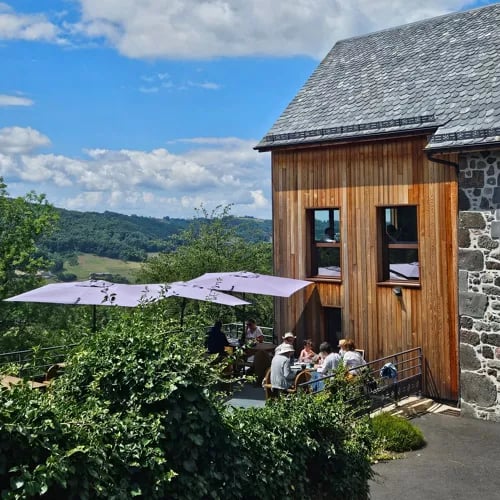 Volcanic stone, slate, and wood compose this twelve-room retreat on the edge of Tournemire, one of France's most beautiful villages. Private terraces frame the Doire Valley's pastoral sweep, while the dining room and outdoor terrace look directly onto the medieval silhouette of Château d'Anjony. After exploring the region's fortified heritage, guests withdraw to an indoor pool, hammam, and sauna—a refined base for slow-paced Auvergne discovery.