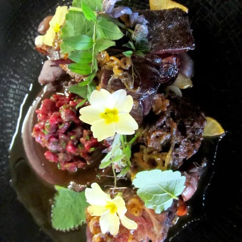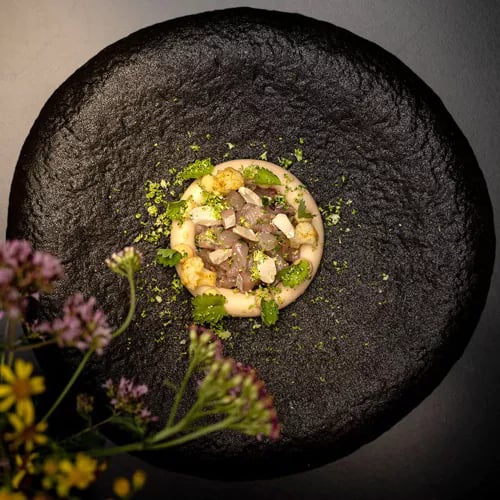 Facing the Gothic façade of Église St Maclou, chef Takahiro Oikawa applies Japanese precision to French bistronomy in this intimate cobblestoned address. His pâté en croûte arrives reimagined with confit octopus and yuzu, while aubergine-miso dip and karaage-style sweetbreads reveal a playful dialogue between two culinary traditions. The silky custard tart finale confirms a kitchen operating with quiet confidence and technical finesse.