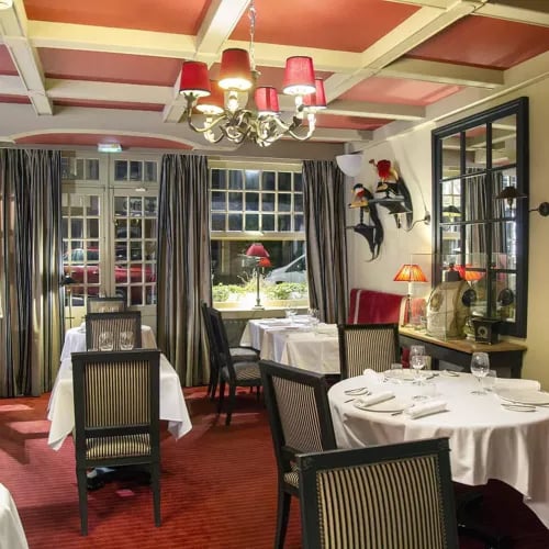 A half-timbered Norman house in the village of Lyons-la-Forêt shelters this one-Michelin-starred table, where the chef's exceptional command of sauces and emulsions anchors a menu threading local seafood and regional produce through Southern French accents. The dining room's classical décor, punctuated by Napoleonic military references, provides a fitting stage for this refined expression of traditional cuisine.