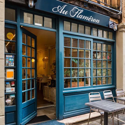 A former Top Chef contestant brings southern French sensibility to this half-timbered house on Place de la Pucelle, where original beams frame a contemporary bistro setting. The Bib Gourmand kitchen delivers inventive compositions—squid tagliatelle with guanciale, flame-kissed horse mackerel with confit aubergine—while evenings reveal greater ambition. Desserts surprise: dark chocolate mousse arrives with smoked fleur de sel, Espelette pepper, and peanut ice cream.