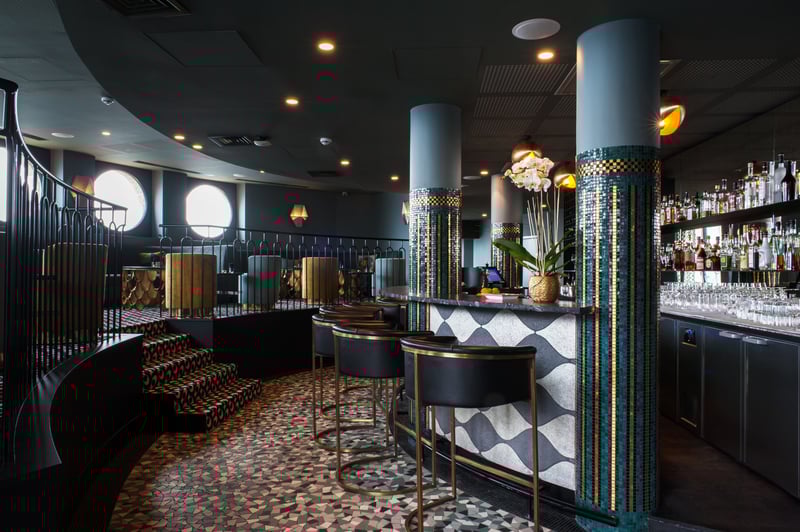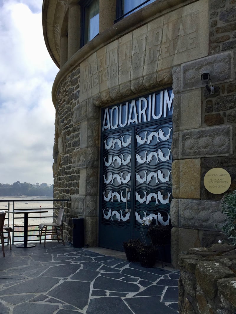 At 7 p.m., we're off to “L'Aquarium,” and the name is honestly well-chosen; the bar sits at the exact spot where an aquarium was once open to the public from 1934 to 1992. Remnants from the aquarium include a gorgeous thirties-era door, decorated with a fish motif, as well as well as a series of porthole windows over the ocean. Reminders of the past are everywhere, from long semi-circular benches to mosaic-decorated columns with ocean-themed colors and prints. It's the perfect place to enjoy a glass of champagne before dinner!