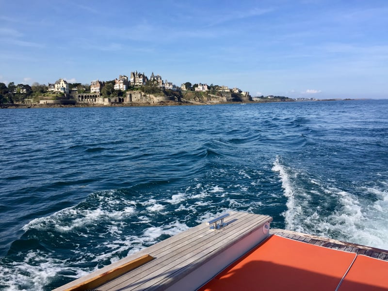 Off we go for an hour at sea with Nicolas, our skipper, to admire the Dinard coastline and surrounding elegant houses, as well as the islands and the city of Saint-Malo across the way. Aboard our private speedboat, we can enjoy a different view of the coast, and it's absolutely magical! This is undeniably a moment that will leave a lasting impression on me, a unique and exclusive opportunity.