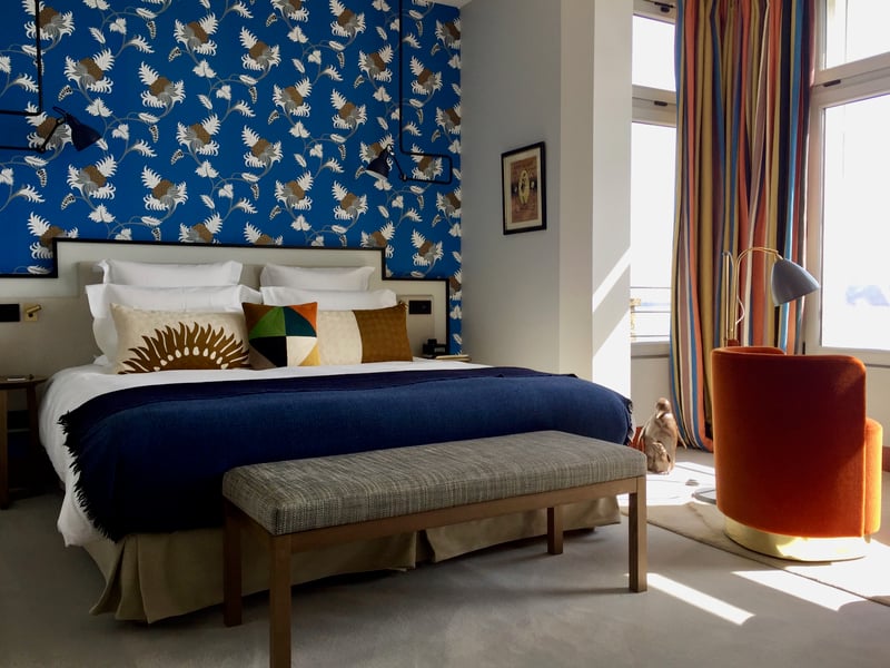 We make our way to our Deluxe room with a sea view and it's truly a heart-stopper: a magnificent, extremely well-lit space with great big windows and a breathtaking view of the bay. As for the décor, I'm a huge fan of the room's audacious look which mixes different colors and prints, forming a very attractive and original interior. Decorator and designer Sandra Benhamou along with interior designer Léonie Alma Mason are behind this unquestionably successful aesthetic.
