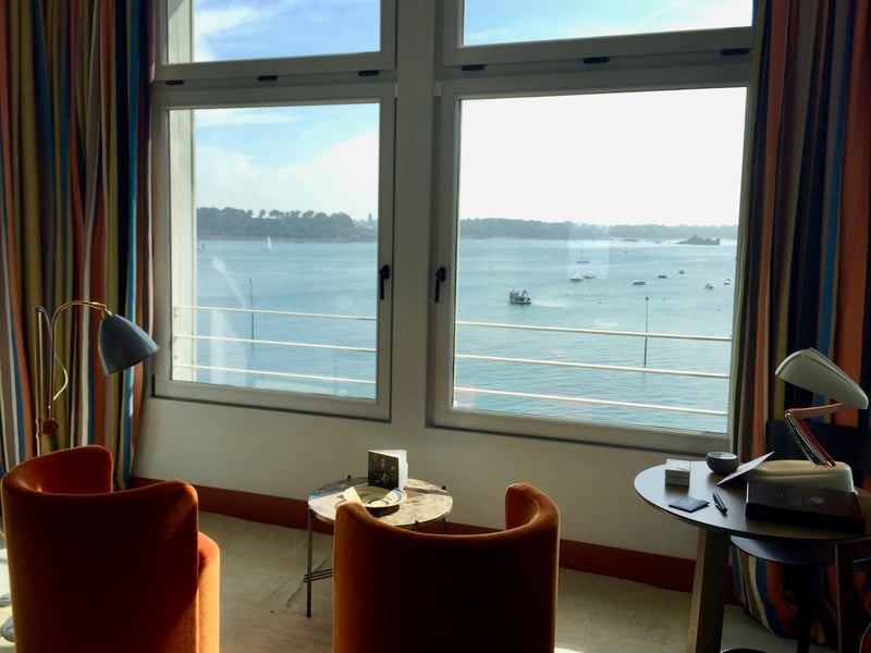 We have just long enough to return to our room and pack our bags, and then it's already time to hit the road again and head to Saint-Malo! It's hard to leave my room and the exceptional view. I wish I could settle comfortably in my armchair with the view of the bay in the background and enjoy a book instead!