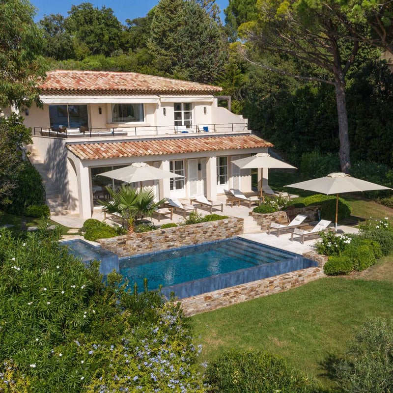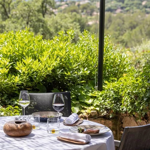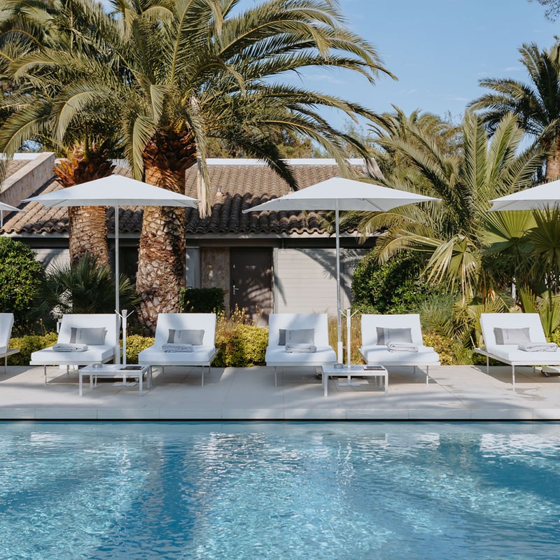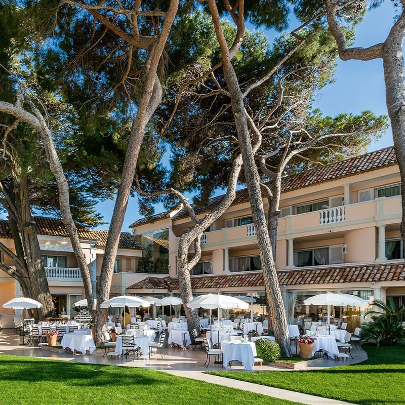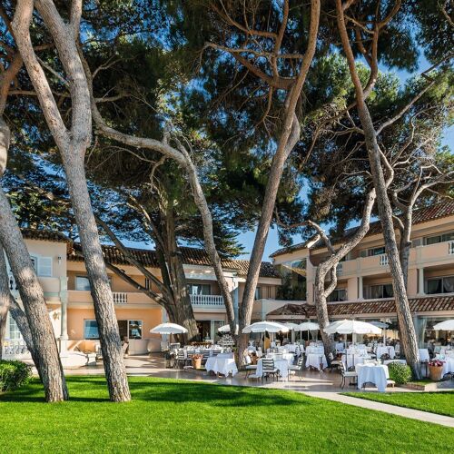 Jean-Michel Wilmotte's architecture frames panoramic Mediterranean views across just 27 rooms furnished with Hans Wegner and Finn Juhl pieces, while Jacques Garcia's interiors channel 1950s Riviera glamour. Chef Eric Canino's two-Michelin-starred La Voile showcases impeccable seafood preparations, and the 1,000 m² Spa Nescens offers marine balneotherapy. Thirteen private villas with individual pools scatter through the pine forest for those seeking absolute seclusion.