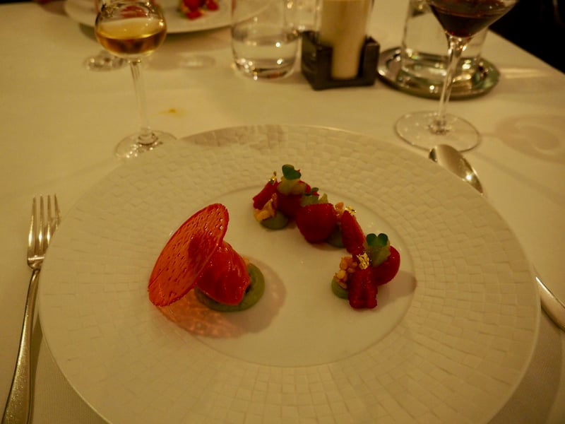As we wanted to learn more about the chef's universe, we tried the Côté Jardin (“Garden Side”) set menu: it featured light cooking, with an emphasis on vegetables in surprising recipes. The seven courses followed in quick succession, with each dish as good as the last—a true delight! I especially fell for the Avocat et Framboise (“Avocado and Raspberry”), which was both healthy and sinfully delicious. The drinks chosen to accompany the meal allowed us to discover wines from hotel owner Mr. Reybier's own vineyards, based in France but also Hungary. Now, experience has taught me that the sommelier is often the wet blanket in starred restaurants – too stiff, with complicated explanations, almost as if he or she only cares about serious wine connoisseurs. But I have to say that the young sommelier, Alexandre, really won us over! Not only was he extremely nice, but he actually talked with us rather than lectured, and we tried some excellent wines. By the end of the evening, we were thrilled with our gourmet meal, enhanced by the thoughtful and attentive service.