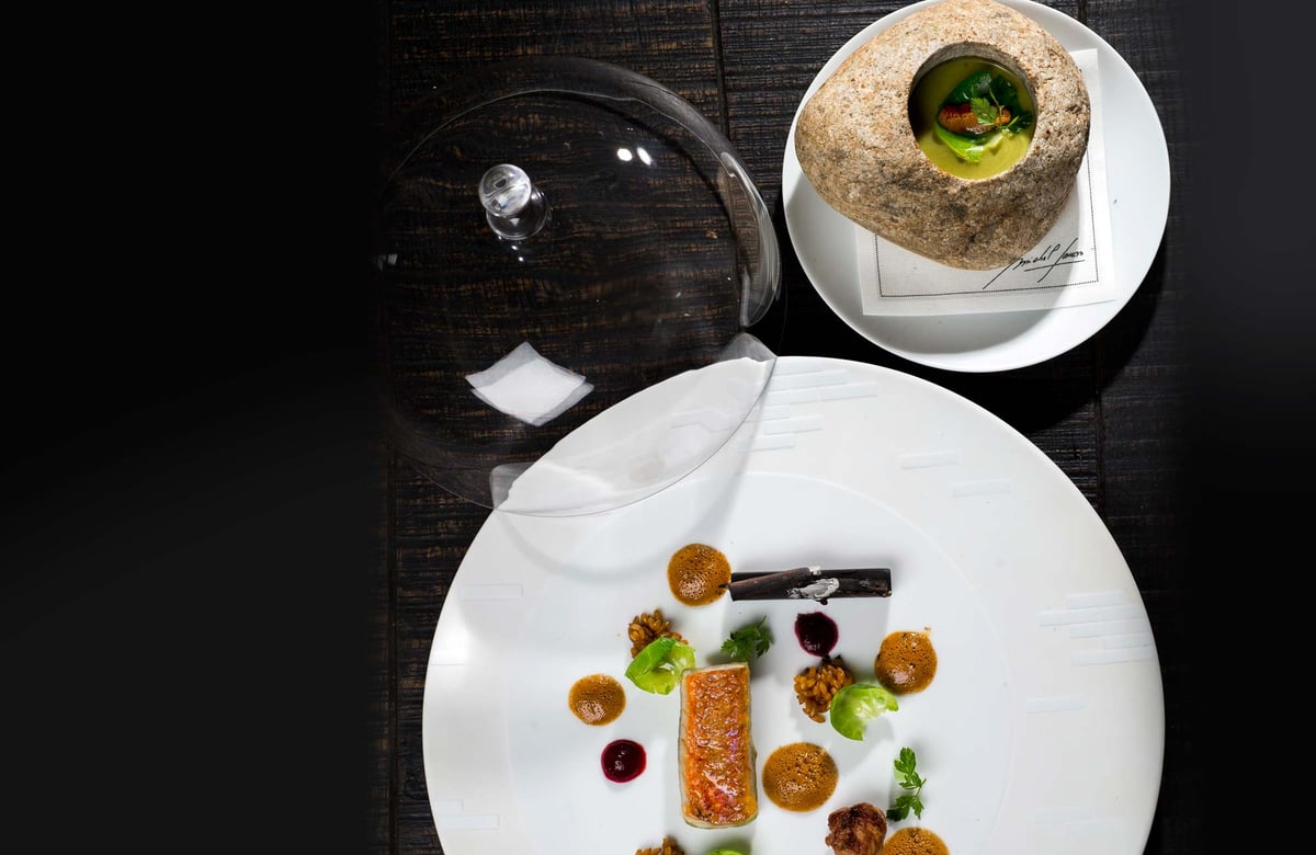 Born in the Gers, more precisely in Saint-Martin d'Armagnac, Michel Sarran sharpened his weapons between his dear southwest and the Mediterranean coast before settling in Toulouse in 1995. He explains his inspiration by saying, "I like to create a Latin cuisine drawing my inspiration from the drawers of my memory by playing with lavender and violet, foie gras and parmesan, red mullet and pumpkin, etc."